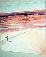 His southwestern roots and his intimate relationship with Native American history and culture have a strong influence on his work. His paintings are vibrant and intense. His use of color and imagination is exceptional. Each piece is filled with emotion and illustrates a journey, both for him and his paintings. His work often portrays universal places filled with mystery and spirituality and tribes of every nation moving towards brighter destinations.