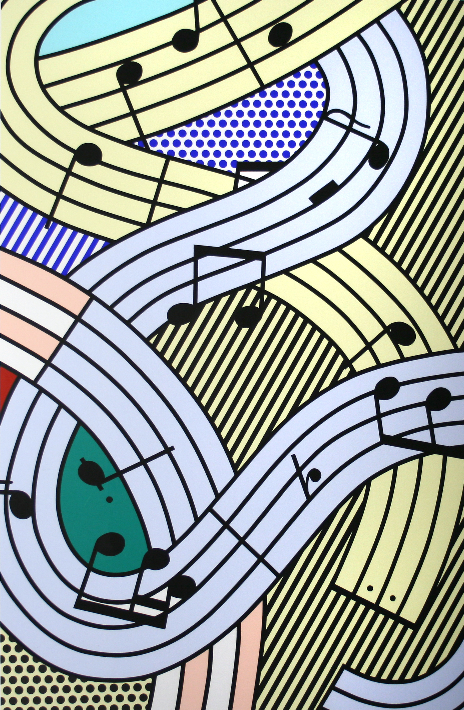 Roy Lichtenstein was born in New York City. In 1939, he studied under Reginald Marsh at the Art Students League in New York, and the following year at the School of Fine Arts at Ohio State University, Columbus. He served in the army from 1943 to 1946, after which he resumed his studies and was hired as an instructor. He obtained his Master of Fine Arts in 1949. From 1957 to 1960, Lichtenstein obtained a teaching position at the State University of New York, Oswego. By then, he had begun to include loosely drawn cartoon characters in his increasingly abstract canvases. From 1960 to 1963, he lived in New Jersey while teaching at Douglass College, a division of Rutgers University in New Brunswick, New Jersey. In 1961, he began to make paintings consisting exclusively of comic-strip figures, and introduced his Benday-dot grounds, lettering, and balloons; he also started cropping images from advertisements. In his attempt to fully grasp and expose how the forms, materials, and methods of production have shaped the images of Western society, the artist has also explored other mediums such as polychromatic ceramic, aluminum, brass, and serigraphs.