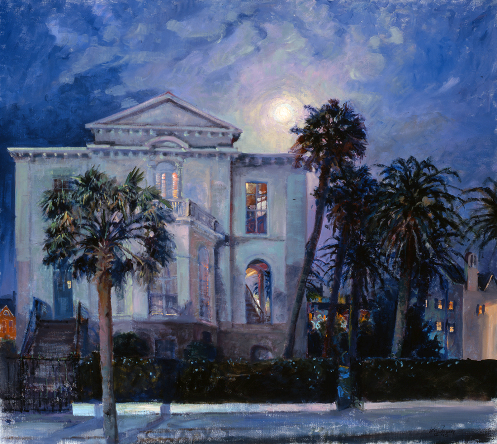 In 1990, he shifted to representational/plein air painting in oil. Since then, he has primarily specialized in coastal landscapes, streetscapes and travel paintings. Through his many accolades and awards, he has achieved a national and international reputation as a master of creating a natural light in his luminist paintings. Fraser has been given 6 solo museum exhibitions in the Midwest, the Southeast, and California. His most recent exhibition is in April 2007, at the Bakersfield Museum of Art titled: As I See It, Paintings by West Fraser. Fraser has been published extensively, including features in Art and Antiques, Plein Air Magazine, The Robb Report, Southern Accents, American Artist, Nautical Quarterly, Southwest Art and Hemispheres, to name a few. In 2000, he represented South Carolina in the bicentennial celebration calendar published by the White House Historic Association. In 2001, the University of South Carolina Press published the monograph Charleston in My Time: The Paintings of West Fraser, which was accompanied by a traveling exhibition to Southeastern museums. In 2006, Fraser painted the official portrait of SC Governor Mark Sanford.
