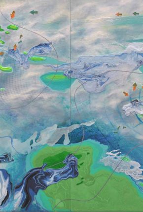 The AIE art collection in Jamaica includes works by African-American artists like Maya Freelon Asante, whose work Migration is an exploration of tissue on ink. It was inspired by the destruction, in the aftermath of Hurricane Katrina, from mass flooding in New Orleans. What ensued was a displacement of residents, who were primarily African-Americans. Freelon Asante attempts to illustrate how that mirrors the displacement of enslaved Africans from Africa. The tissue represents the familial fabric that has been broken and later strengthened by the symbolism of ink and water. And, like King’s “I Have a Dream” speech, it reminds us that, though changes have been made, further dialogue and reflection are required.